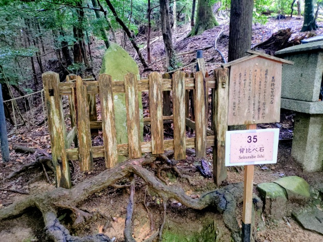更に上って行きます。背比べ石まで来ました。義経が背比べをしたと伝わっている石です。