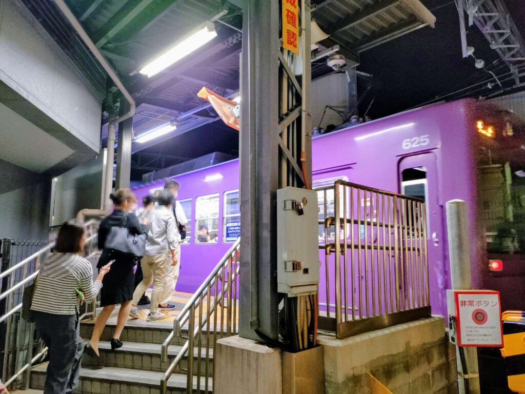 嵐電の西院駅まで来ました。時間はまだ6時半ですが、すっかり日が暮れています。秋分の日を過ぎて、より暗くなる時間の早さを感じます。