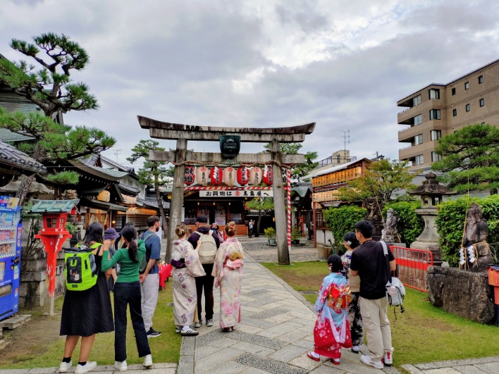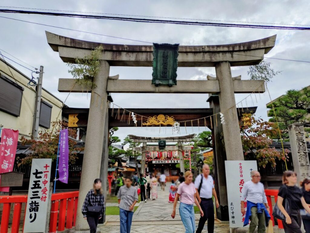 そして京都ゑびす神社に到着です。時間は午後3時過ぎ。鳥居から出てくるのは外国人ばかりです。
