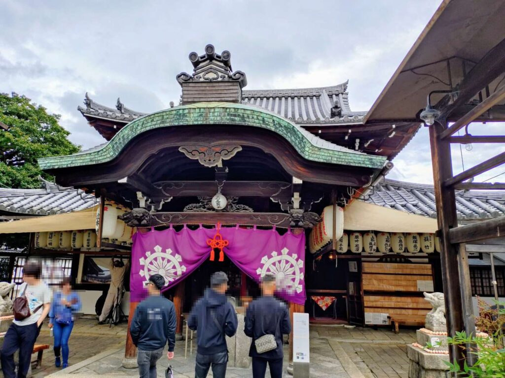 この後は、京都ゑびす神社へ向かいます。禅居庵の西側の山門から出ると、道を挟んだ右側がゑびす神社ですが、せっかくなので南側の山門から出ました。