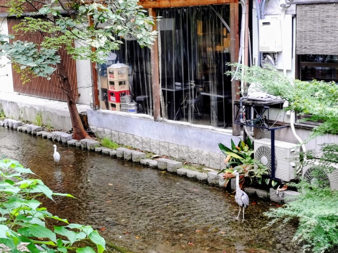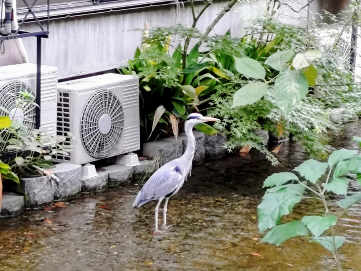 途中、高瀬川ではアオサギと小さなシラサギがいました。高瀬川でアオサギはいつもいますが、シラサギはあまり見ないです。