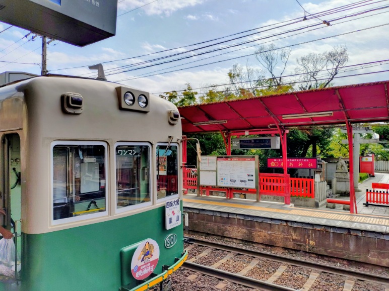 この後は嵐電に乗って薬局に向かいます。乗った車両は301号車。1971年から走っている貴重な列車です。しかも昔ながらのカラーです。
