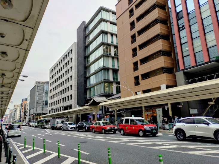 正午の四条烏丸。ここから10分くらい歩けば時代祭の行列を見ることが出来ます。でも雨が降っていますし、仕事に行けという事かもしれないです。おとなしく出勤する事にしました。