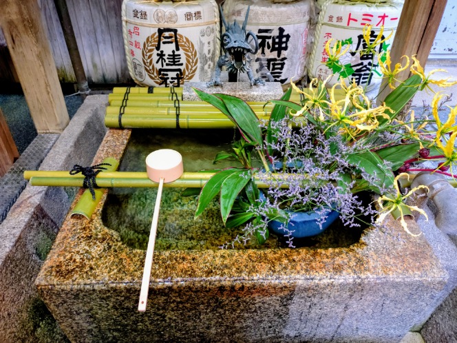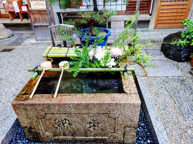 錦天満宮には手水舎が2カ所ありますが、花手水です。いつ来てもきれいにお手入れされています。