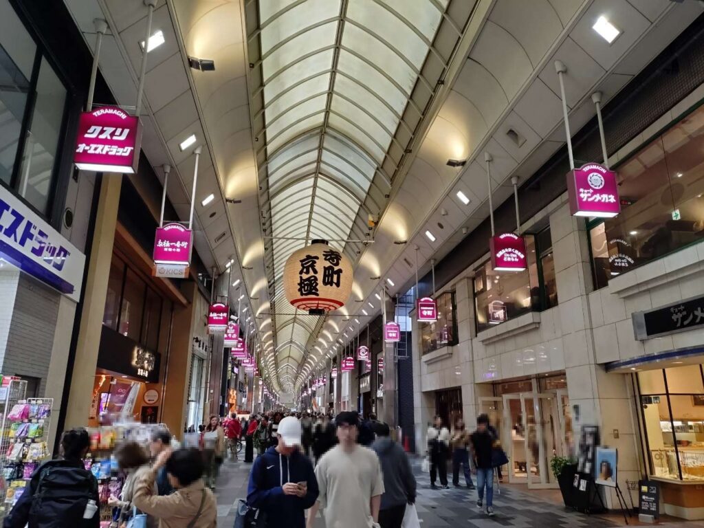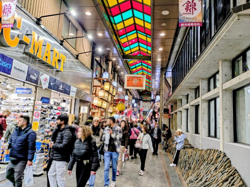 寺町京極商店街の錦通まで来ました。錦市場方面を見ると、いつものことですが外国人ばかりで恐ろしく混んでいます。さすがに日本人の観光客も寄り付けないと思います。