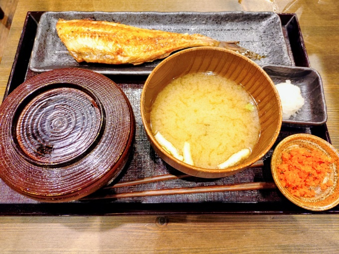 本日の食事は半身シマホッケ定食です。以前妻がまるまる一匹のシマホッケ定食を頼んでいたら、凄いボリュームで私には無理と思ってしまう量でした。