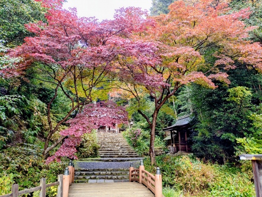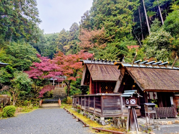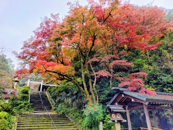 インクラインの終点から5分くらいで日向大神宮に到着です。紅葉が見頃です。