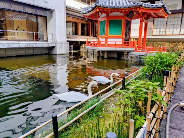 太子堂の隣の池には白鳥が2羽並んでいました。白鳥を見ているだけで楽しめます。