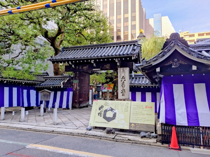 久しぶりに六角堂(頂法寺)へ向かいます。いつもと雰囲気が違います。紫白幕が掛けられていました。