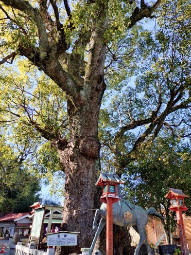 江戸時代が終了する十数年前。大火災があった時、この樟の幹や枝から白水が噴き出し、風向きが逆になり延焼を食い止めたと伝えられています。