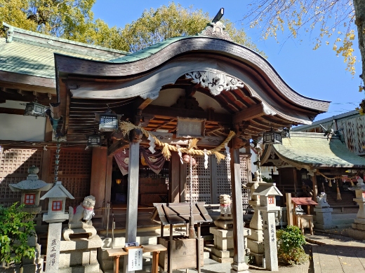 闘鶏神社から10分も歩けば蟻通神社に到着です。商店街に位置しています。