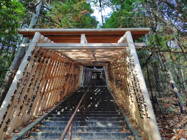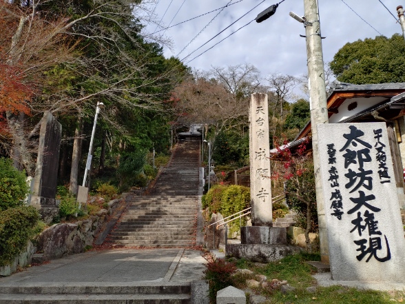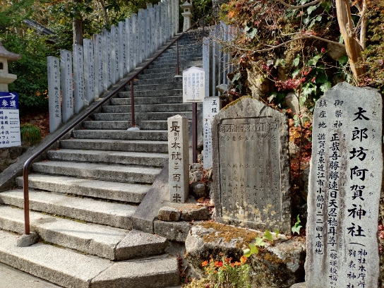 成願寺のすぐ左側には太郎坊宮への階段。太郎坊宮の社号標もあります。