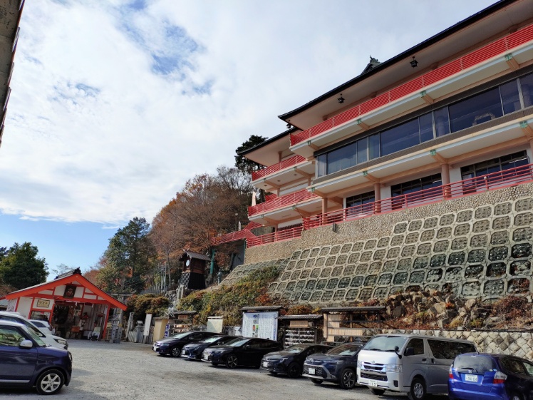 先ほどの中間地点を右に曲がれば、すぐ中腹にある第1駐車場です。以前来た時は、いずれもここまで車で来て本殿に向かいました。