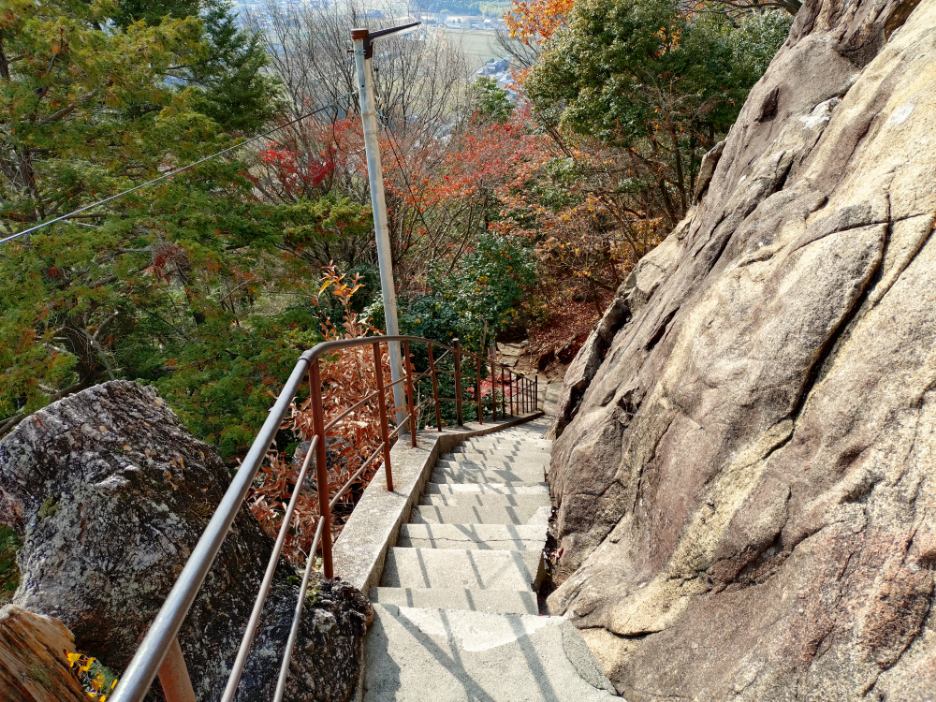 階段は、あまりジグザクしないで結構直線的になっているので急になっています。慣れない人には辛いかも!