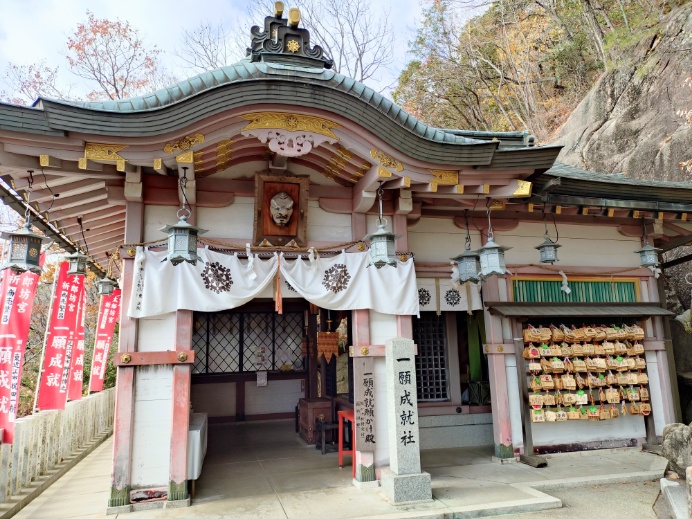 大鳥居を過ぎてから階段が始まります。階段の先には赤神山・成願寺。天台宗の寺院です。