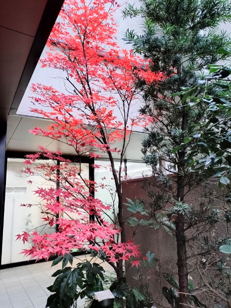 四条烏丸のビルの敷地にも、まだ見頃な紅葉🍁がありました。