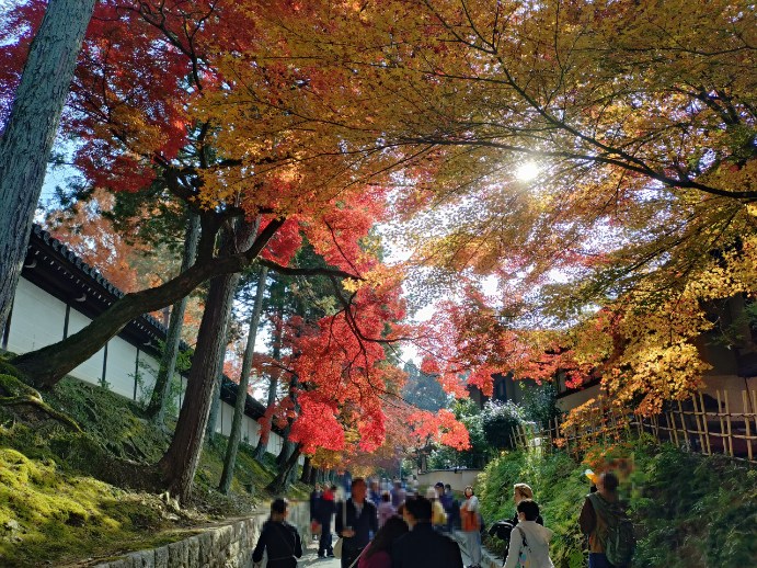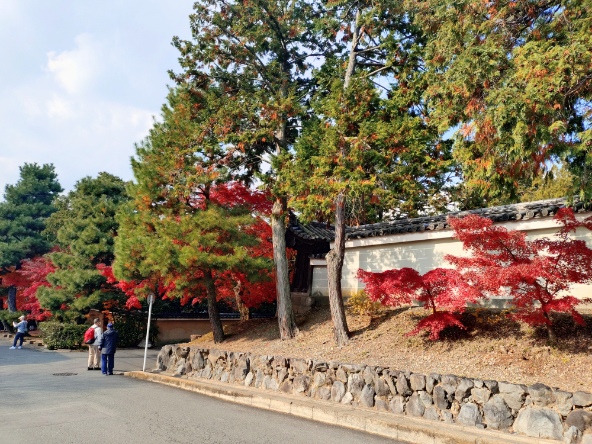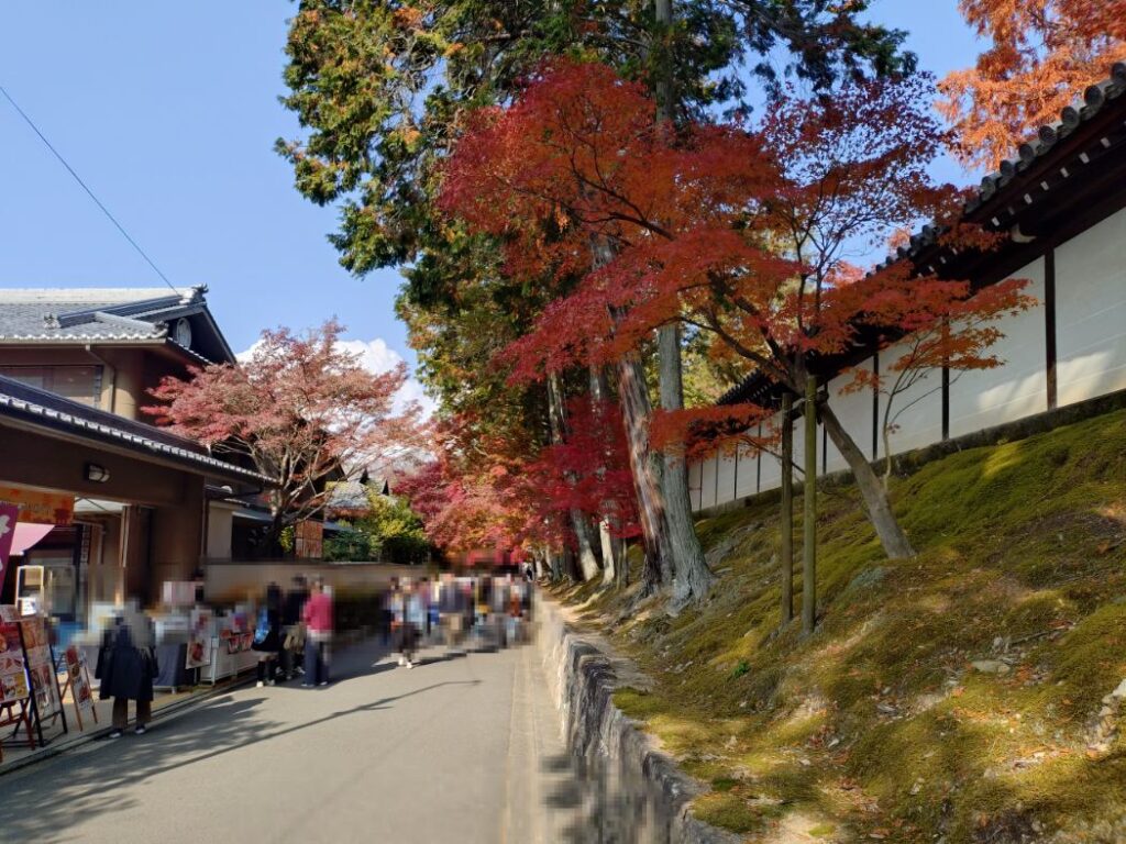 三門近くの六波羅門から出ました。南門へ向かいます。六波羅門から南門へは歩いている人は少ないですが、静かに紅葉を楽しめて、個人的には混んでいる参道を歩くよりもお勧めです。