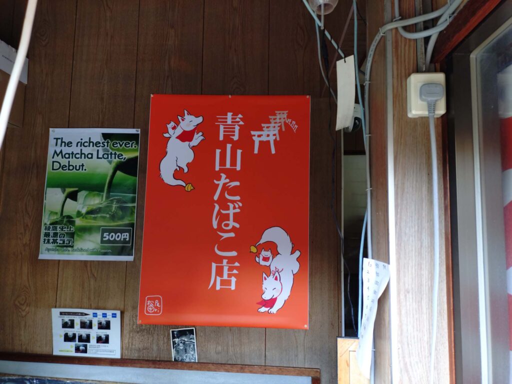 本殿の前で参拝出来ないので、とりあえず青山たばこ店さんで休憩します。