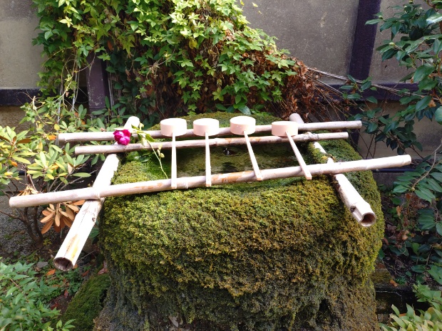 平等寺の本堂の右に移動すると手水所があります。こちらの水は地下水を汲み上げているので、今日みたいに寒い日は、水温が温かく感じます。