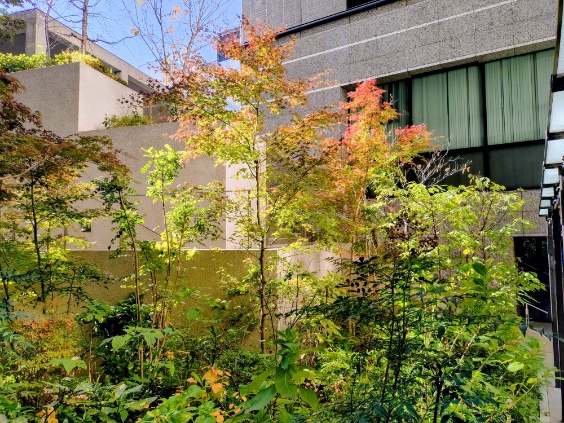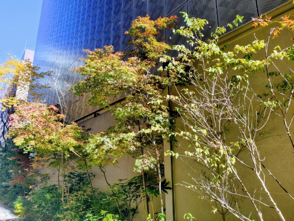 その途中で四条烏丸の長刀鉾緑地を通ってみます。ビジネス街の紅葉もそろそろ見納めになってきました。