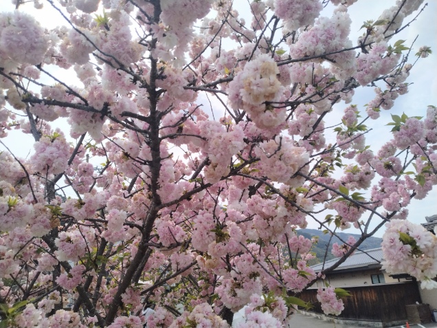 という事で、薬局に戻ります。阪急・嵐山駅まで戻って来ました。八重桜がきれいです。