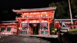 こちらの西楼門は大正時代に市電を通すため四条通を拡張したときにそれに合わせて数メートル移動しました。以前は西楼門を過ぎると正面に疫神社の位置でした。それほど八坂神社にとって疫神社は大変重要ななお社です。