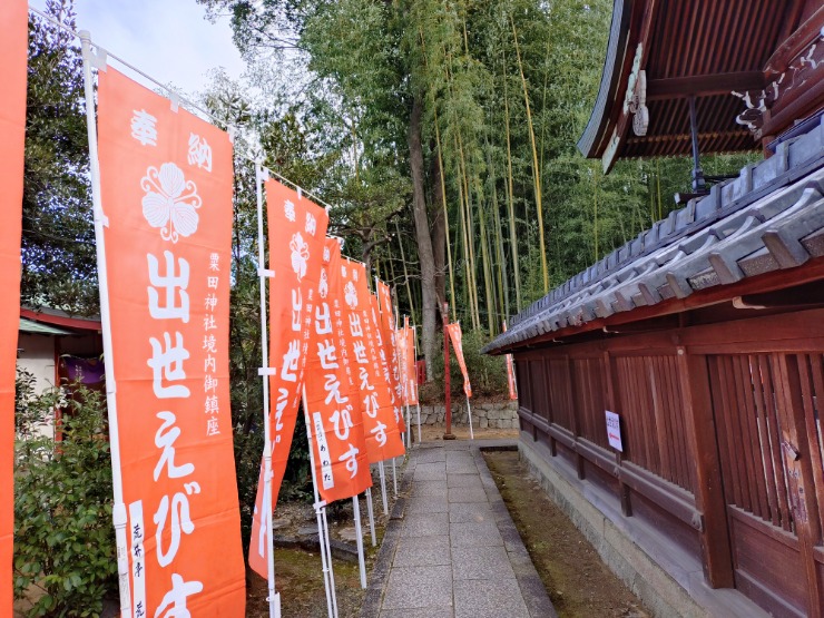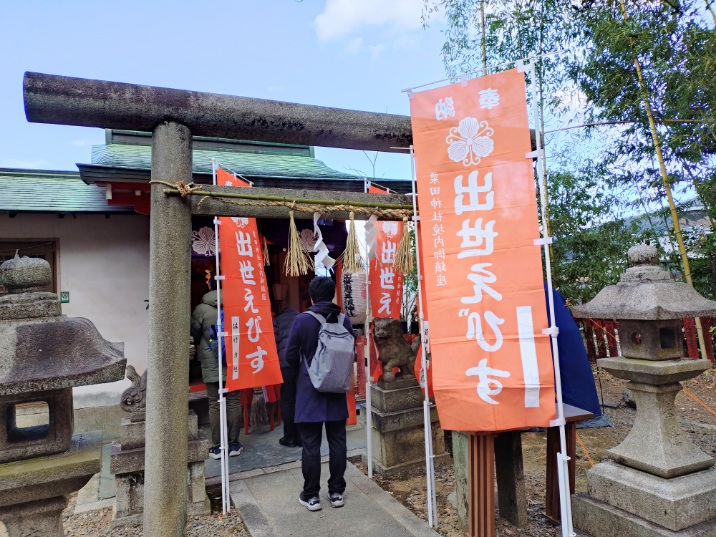 なんと1月9日から11日の出世えびす祭の期間だけお姿を見ることが出来るのでした。釣り竿と鯛を持っているのですが、ふっくらしていない特徴のあるえびす様でした。