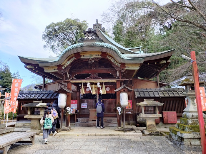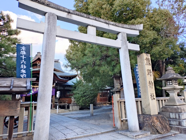 更に5分くらい歩いたら熊野神社に到着です。八ツ橋発祥の地が境内にあります。