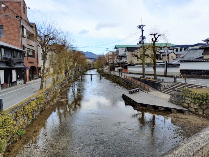 途中、ふらっと白川沿いを歩きます。名所の一本橋(行者橋)は三連休ですが誰もいません。寒いですし当然かも。