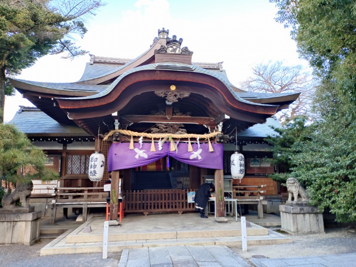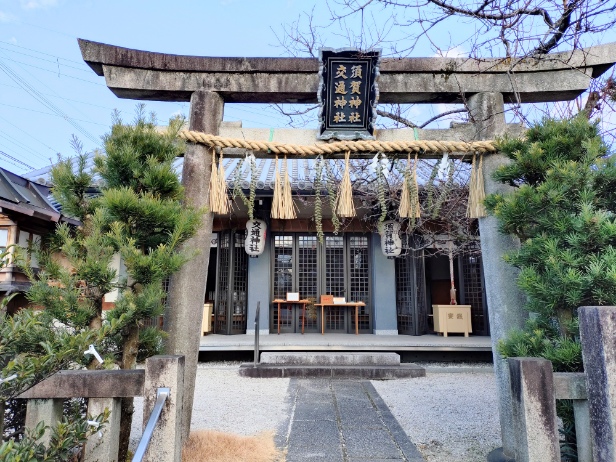 吉田神社から15分歩けば須賀神社・交通神社に到着です。施設訪問で車を運転していますし、しっかり挨拶します。🙏