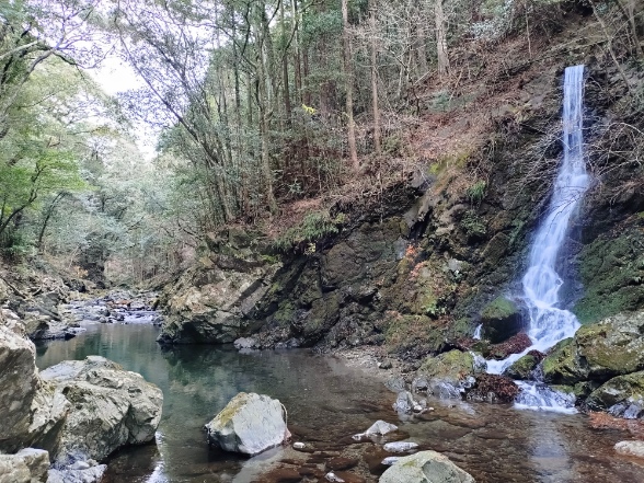 滝のあり、川の流れがとてもキレイです。