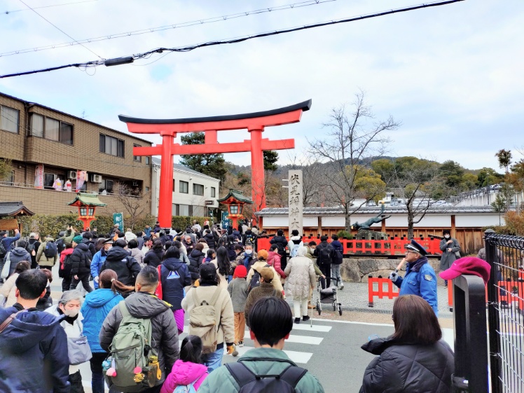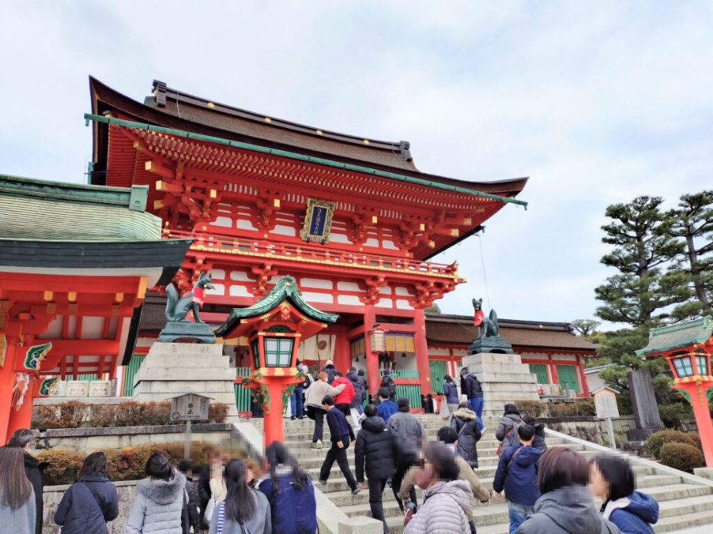 稲荷駅を降りたら目の前は伏見稲荷大社の大鳥居。大混雑です。