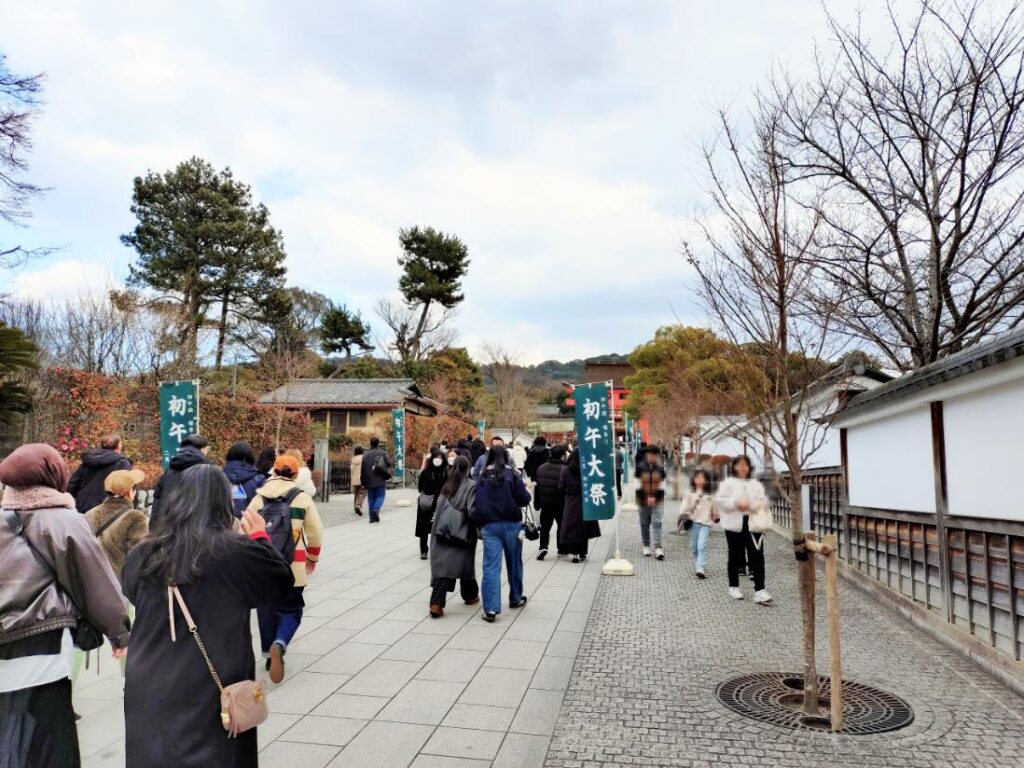 この光景は大祭の日ではよく見られます。多くの人が外拝殿の賽銭箱の前で列になっているので、ここが参拝する場所だと思ってしまうのです。もちろん外拝殿とわかっていて参拝している人もいると思いますが。