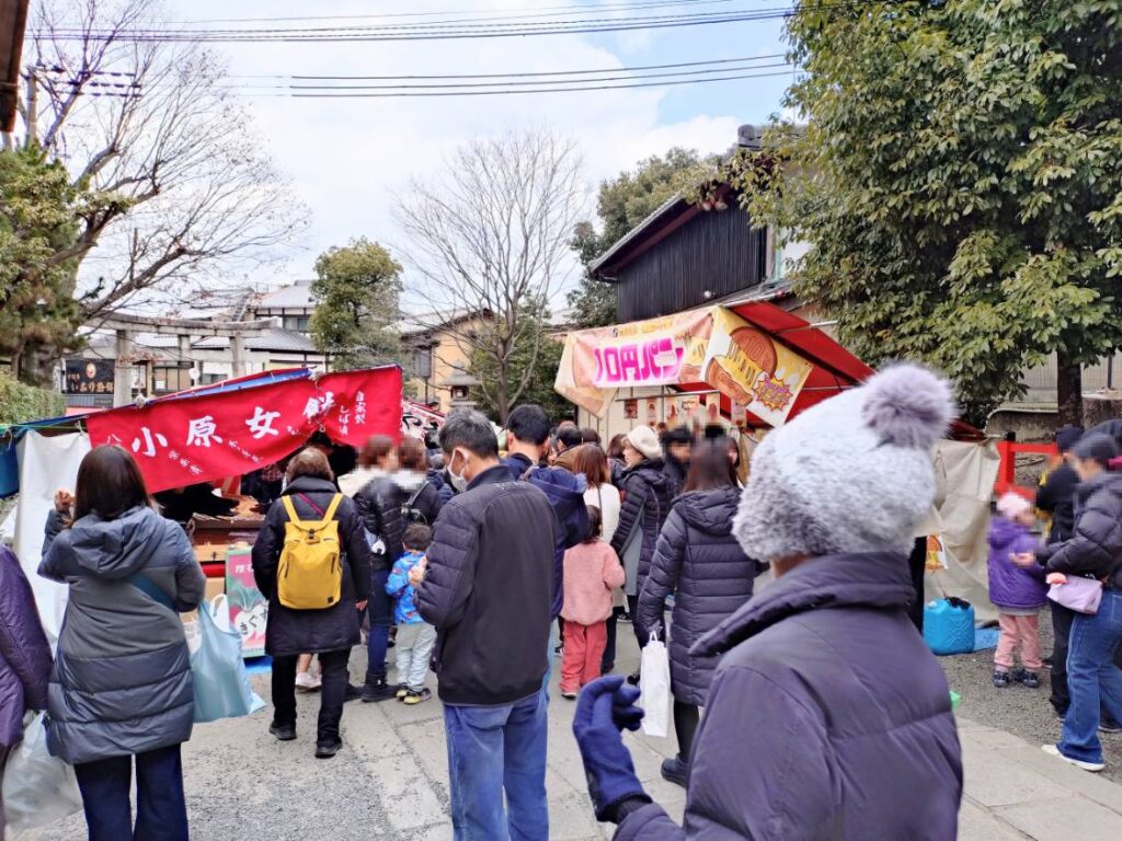 参拝した後は、妻から「稲荷ふたば」で豆大福を買ってきてと頼まれていたので、裏参道を歩きます。普段から混んでいますが、もちろんそれ以上の大混雑です。