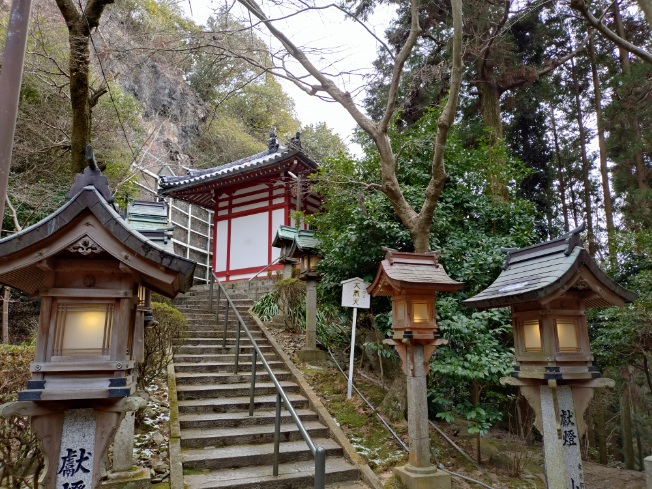 今回は車やケーブルカーではなくて歩きます。駅から20分以上の上りです。今は寒いですがすぐ気にならなくなります。