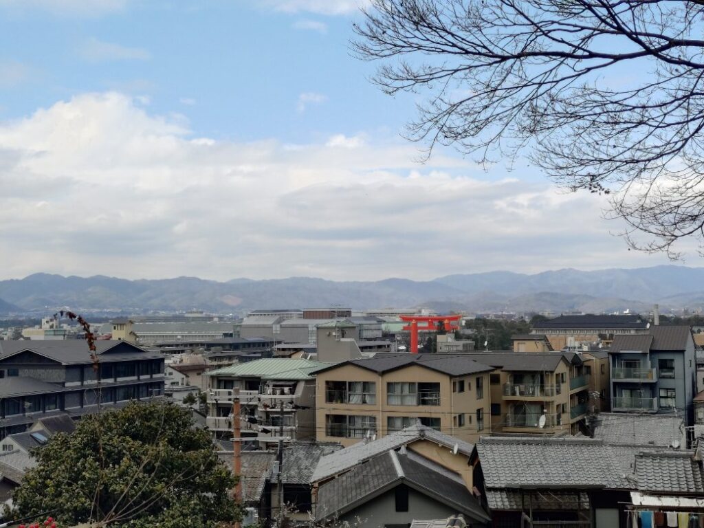 境内からは良い眺め。平安神宮の大鳥居が良く見えます。