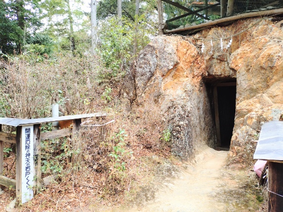 すぐ天の岩戸に到着。「開運厄除の神天の岩戸くぐり」。こちらをくぐって反対側に出ます。すぐくぐれます。中にお宮がありました。🙏