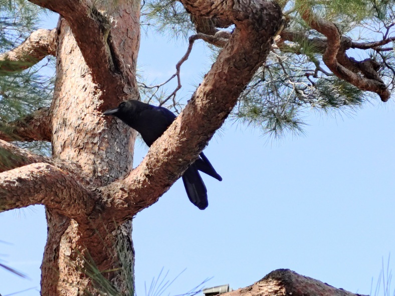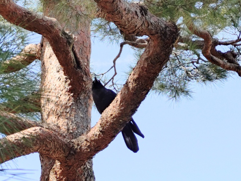 そして近くに木にとまり、カアカア鳴いています。何かを訴えているみたい。しばらくカラスを眺めていました。それにしてもなかなか鳴きやみません。