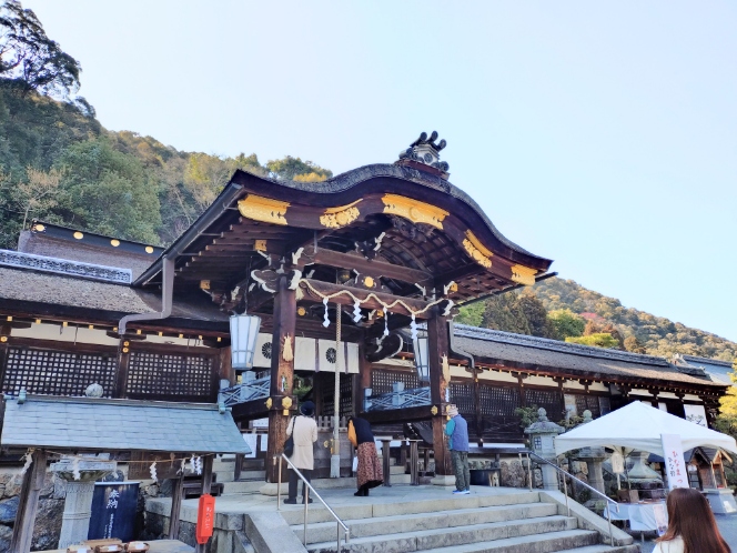 移動途中に松尾大社の前を通るので、少し休憩。暖かい日で普段より賑わっている印象です。