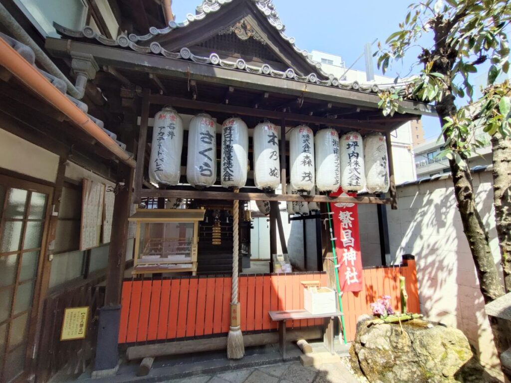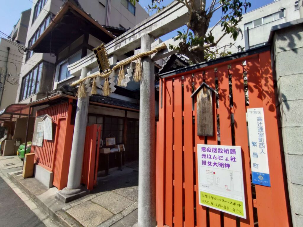 平等寺から烏丸通を過ぎて高辻通を少し西へ歩くと繁昌神社。商売繁盛の御利益があるとされ、弁財天様がお祀りされています。