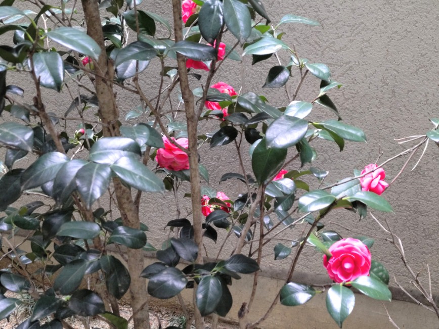 さて本日は神明神社を参拝してから長刀鉾緑地を通りました。鮮やかなツバキが気になります。