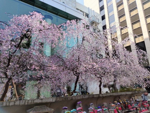 隣はスターバックス。この時期のスターバックスの席は桜見物の特等席になります。