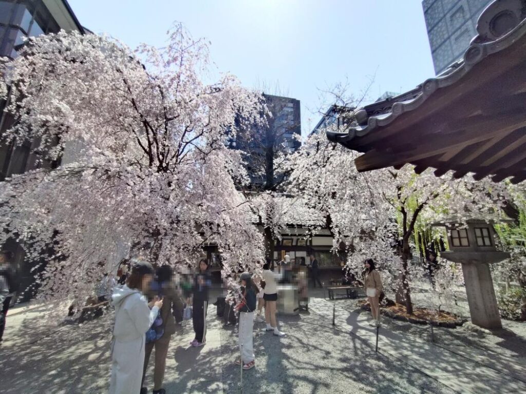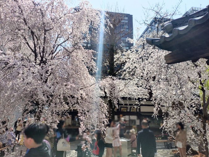 数日前はまだそれほど咲いていなかったのに、一気に見頃になりました。境内の人もとても増えています。