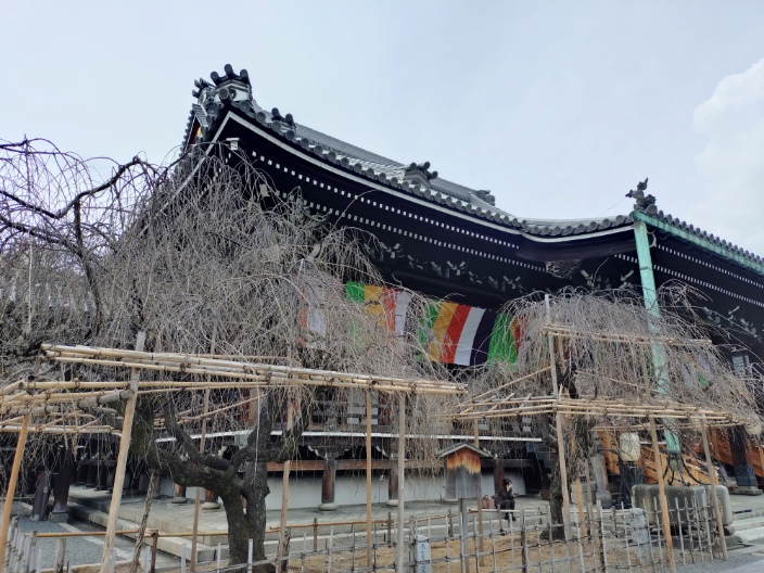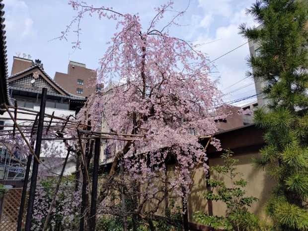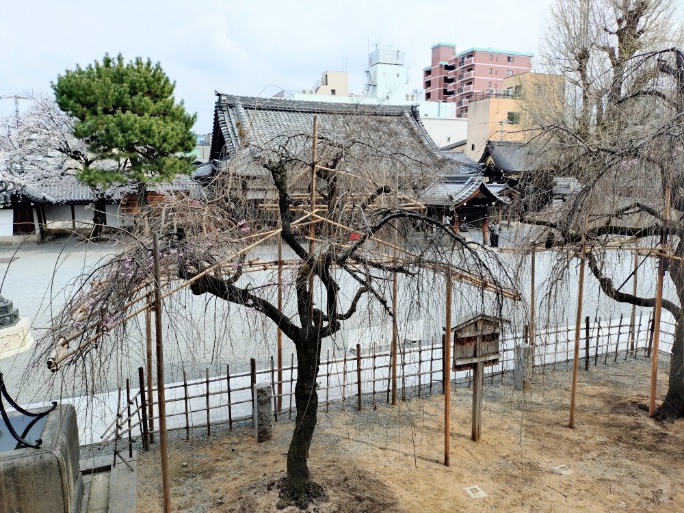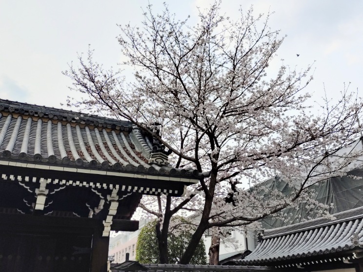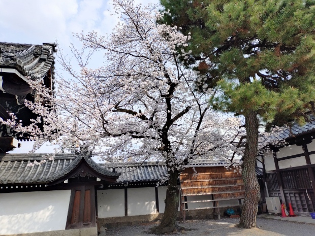 その後は少し歩いて佛光寺へ。ソメイヨシノは見頃を迎えています。