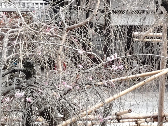 枝垂れ桜はやっと僅かな開花がありました。
