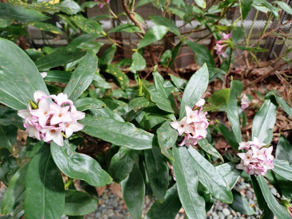 四条烏丸近くの長刀鉾緑地を歩いていると、沈丁花(ジンチョウゲ)が咲いています。仕事前に少しホッコリ。😄