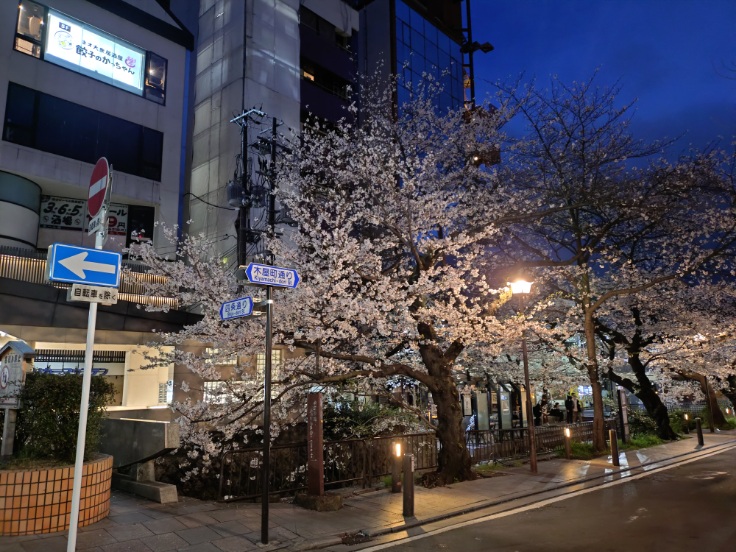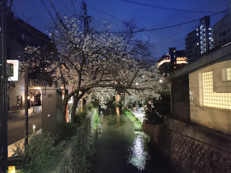 四条木屋町の桜🌸。昨日は雨風が強かったですが、まだ見頃が続いています。歩いている人は結構いましたが、大半は若者です。朝まで飲んでいたのでしょう。