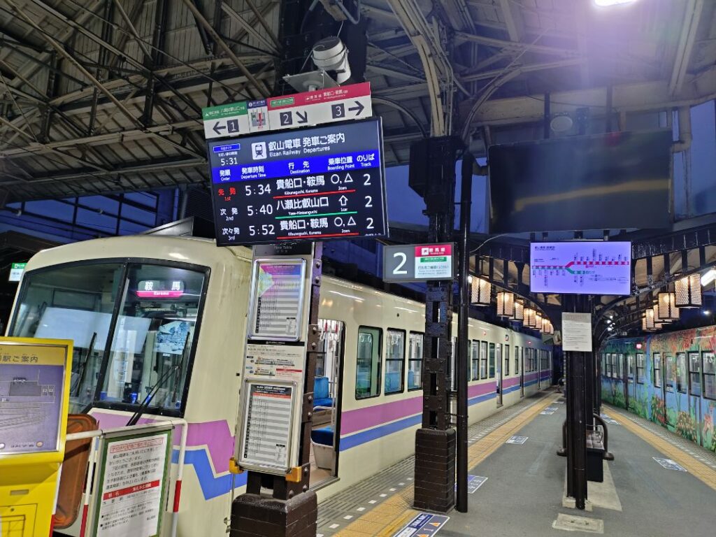 京阪電車に乗って出町柳駅へ。そして叡山電車の出町柳駅から5時34分発・鞍馬行に乗車。この時点で10人くらい乗っていたかも。