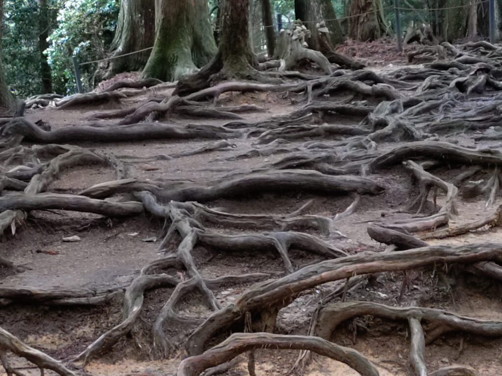 この後は貴船へ向かいます。途中の木の根道です。金堂から貴船へ向かう時、木の根道までが上りでこの先はずっと下りです。