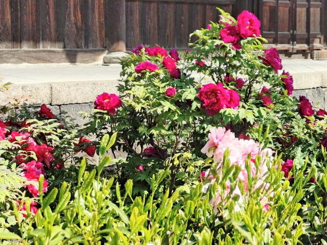 次は安井金比羅宮へ向かうので、建仁寺の境内を歩きます。すると牡丹が見頃でした。